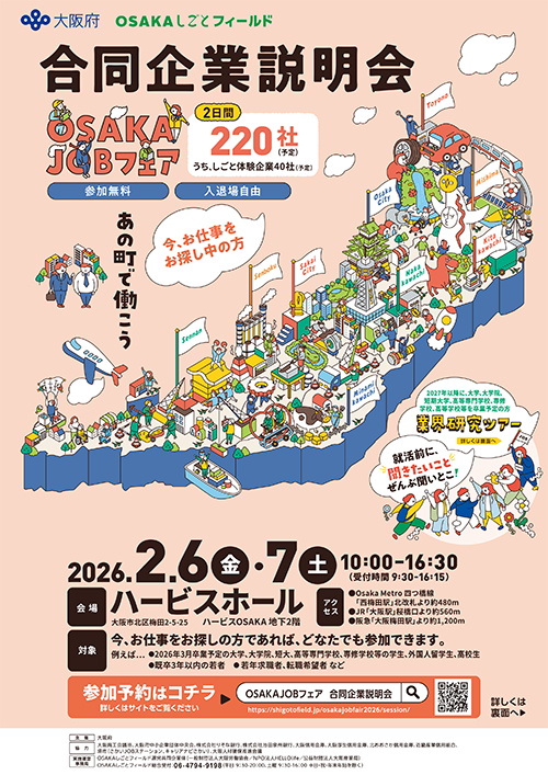 ホームページ・事前予約:https://shigotofield.jp/osakajobfair2026/session/
